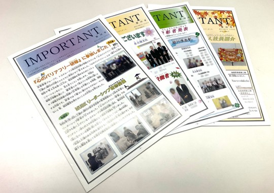 当社では四半期に一度「IMPORTANT」という社内誌を発行しています。社内誌の企画・立案・作成は社員が行い、記念すべき創刊号は平成31年1月11日に発行されました。現在も変わらず、各拠点で選ばれたメンバー達が業務の合間を縫って、協力しながら作り上げています。
