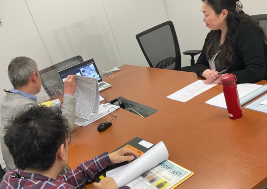 社内誌の作成期間中は、週に一度リモートでミーティングが開催されており、作成スケジュールの確認や、各拠点ごとに掲載したい内容のすり合わせ、ページの割り振り、デザインについてなどを話し合います。掲載する記事は様々で、新入社員紹介や検定合格者の発表、各拠点の出来事など幅広く掲載しており、社員の楽しみのひとつになっています。
