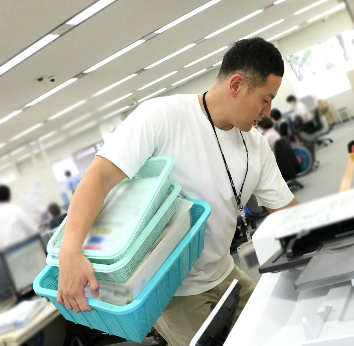 私は現在、40人ほどの社員が所属するグループのリーダーを任せてもらっています。主となる業務は、DM発送で、全て合わせると18種類ある多品種の業務を担当しています。締め切りや受領の関係で、毎回同じルーティーンで仕事することはなく、毎日慌ただしいですが充実しています。また業務だけでなく、40人も居れば考え方も様々なので、できる限り社員の悩みを聞くようにしています。検印はもちろんですが、上司が自分にしてくれているように、グループのメンバーが安心して働ける環境をつくることが私の仕事だと思っています。小さなすれ違いで違和感が残ったままにならないように一人ひとりに向き合うよう心がけています。そういった細かな対応ができるのも上司が働きやすい環境を提供してくれるおかげだと、日々実感しています。