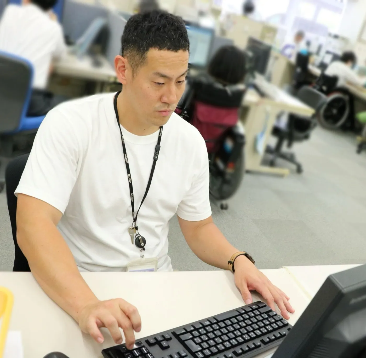 以前はSEとして働いていたんですが、すごくハードな仕事で家には寝に帰るだけ、という毎日を過ごしていました。そんなある日、このままではいけないと突然思い転職を決意しました。新聞に当社の求人広告を見つけて「そういえば子供のころに障がい者手帳を取得したな」と、その時に思い出したんです(笑)子供のころは自分の障がいを認められず、それまで手帳を使っての支援は受けたことがなかったのですが、今の環境が変わるならとすぐに応募しました。